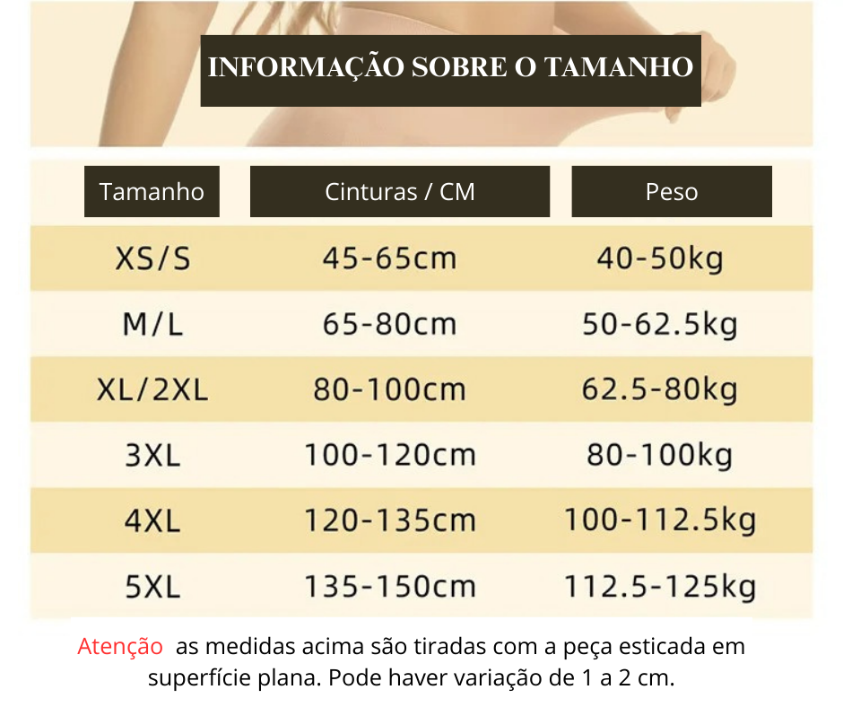 A Slim Body reduz até 3 tamanhos do seu manequim em questão de segundos. Graças à sua modelagem anatômica e compressão inteligente, ela se ajusta ao seu corpo como uma segunda pele, esculpindo a silhueta de forma natural, sem apertar ou causar desconforto. Ideal para realçar suas curvas e elevar sua autoestima instantaneamente.